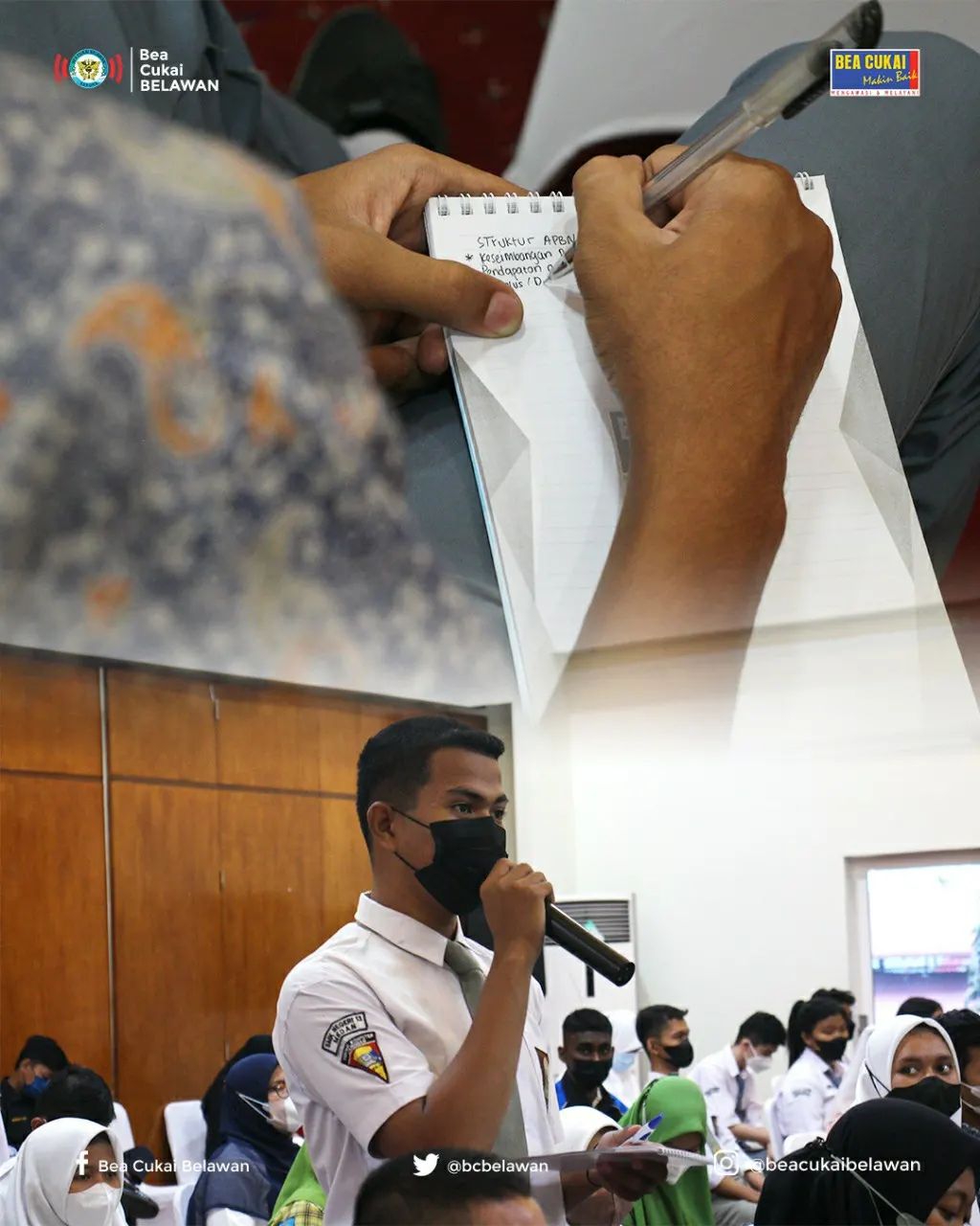 (23/2) Bertempat di Aula Deli, Bea Cukai Belawan gelar APBN Week 2022 secara tatap muka terbatas dan zoom online dengan para peserta siswa/i dari beberapa sekolah di wilayah Belawan dan sekitarnya. Acara dibuka secara resmi oleh Kepala KPPBC TMP Belawan, Tri Utomo Hendro Wibowo, dan menjadi narasumber pada kegiatan ini adalah Kepala Subbagian Umum, Hasanuddin dan Staff pada Subbagian Umum, Jhonny Danuarta.