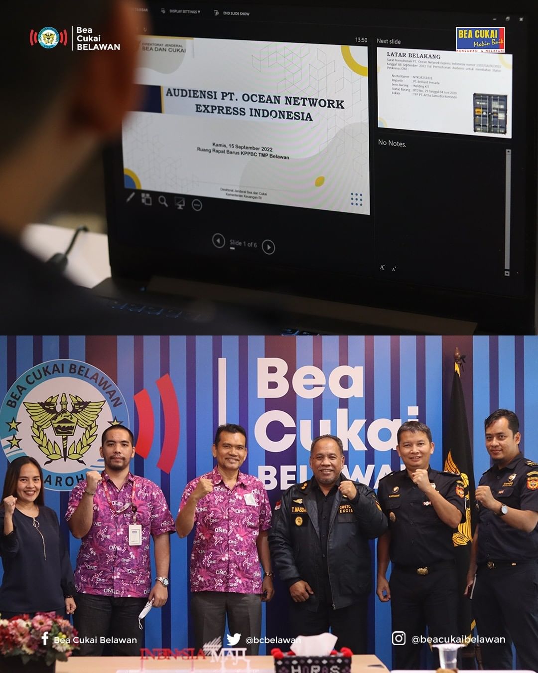 Kamis, (15/09). Bertempat di Ruang Rapat Barus Gedung Kusuma KPPBC TMP Belawan, Bea Cukai Belawan laksanakan audiensi dengan PT. Ocean Network Express Indonesia (ONEI).
