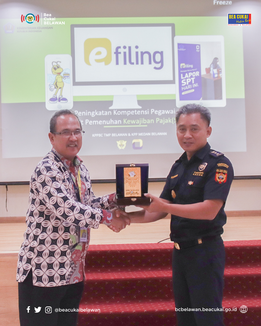 Mendukung kegiatan pelaporan pajak yang juga menjadi tanggung jawab setiap pegawai negeri sipil, Bea Cukai Belawan mengadakan kegiatan Peningkatan Komptensi Pegawai terkait Pengisian SPT dan Pemadanan NIK-NPWP pada hari, Selasa (21/02/2023) di Aula Deli Lt.3 Kantor Bea Cukai Belawan yang dipandu secara langsung oleh Tim Penyuluh dari Kantor Pelayanan Pajak (KPP) Pratama Medan Belawan.