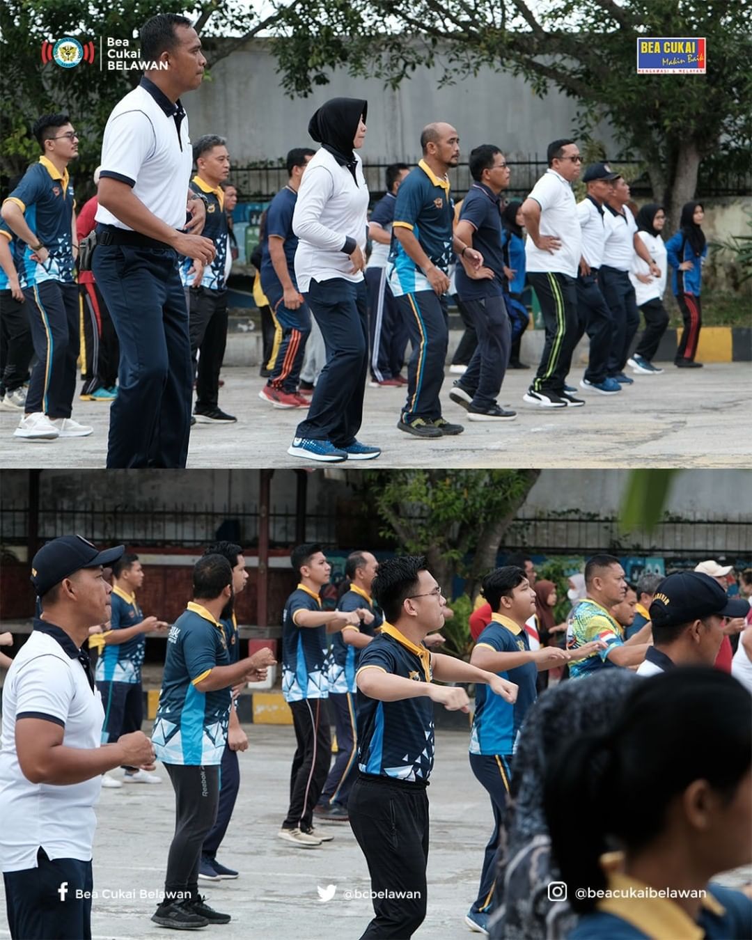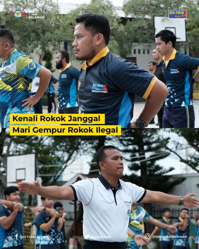 Jumat (14/10). Bea Cukai Belawan bersama instansi terkait di wilayah Pelabuhan Belawan melakukan Senam Bersama sekaligus Kampanye “Gempur RokokI legal”. Kampanye ini bertujuan untuk mengedukasi masyarakat, meningkatkan peran serta masyarakat agar ikut melakukan pengawasan guna menekan peredaran rokok illegal.