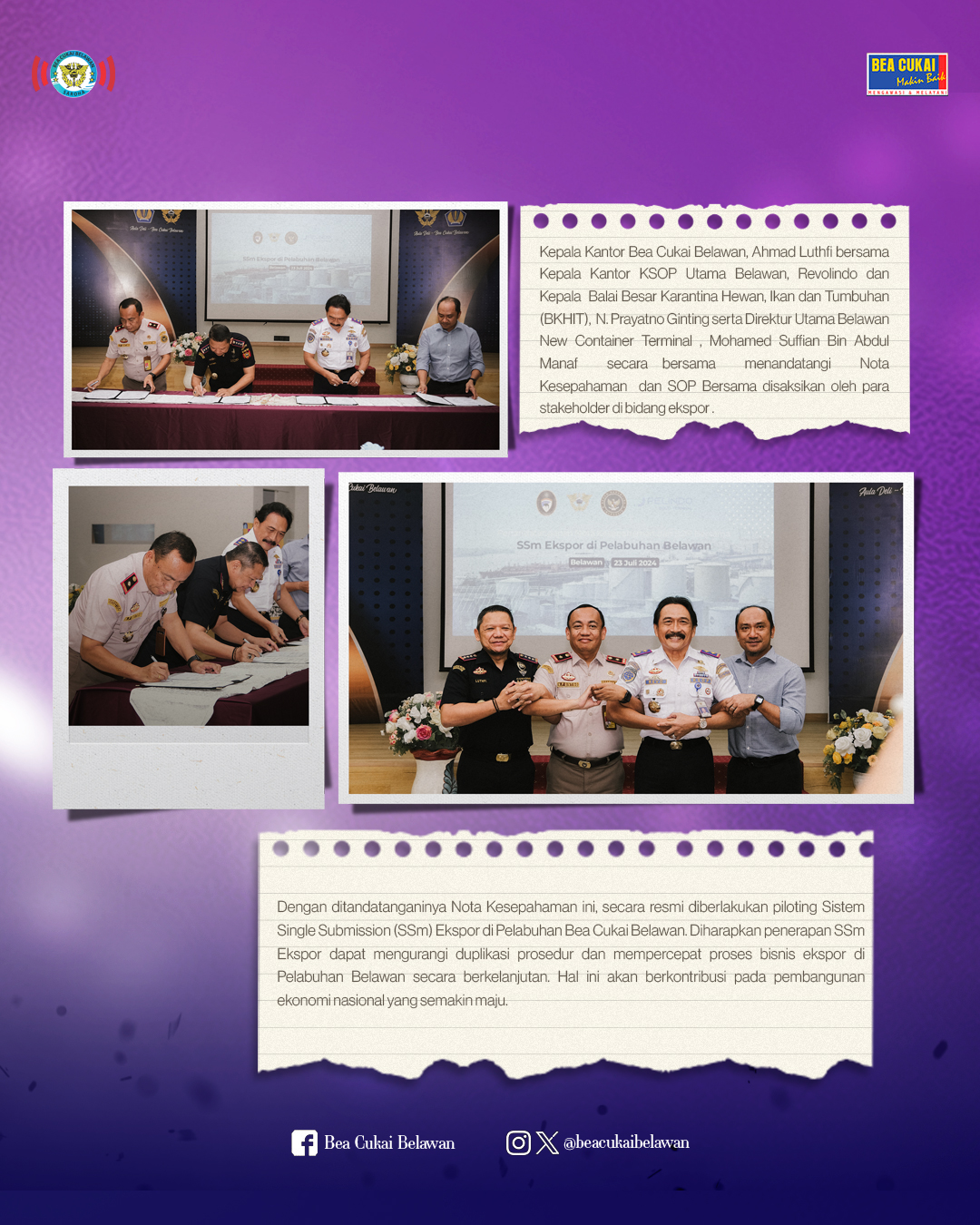 Lebih lanjut terkait SSm Expor, Fauzan menjelaskan, “Selain itu, SSm Ekspor juga diperkenalkan untuk meningkatkan efisiensi dalam proses ekspor, memberikan kemudahan akses bagi para eksportir dalam mengurus administrasi dan dokumentasi yang diperlukan”.