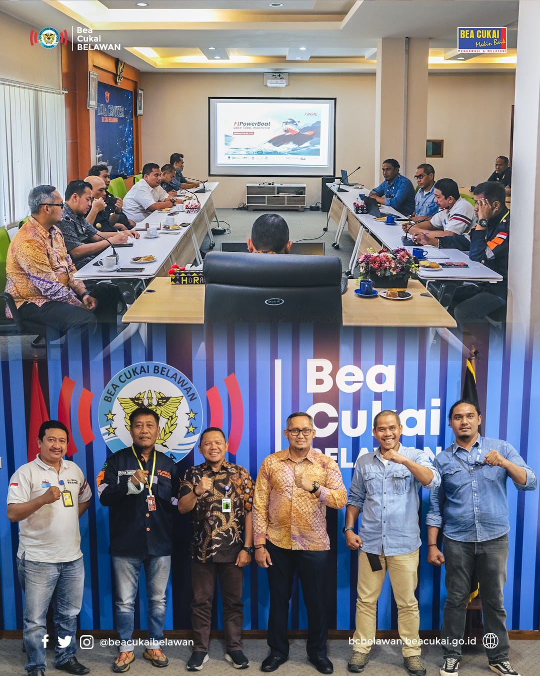 Belawan (27/01) – Menjelang Formula One Powerboat World Championship (F1 H2O), Bea Cukai Belawan bersama InJourney yang merupakan Event Organizer dari Acara F1 H2O (F1 Fowerboat World Championship) ini dan PPJK mengadakan Rapat Persiapan Penyelenggaraan F1 H2O Power Boat World Championship yang akan diadakan di Danau Toba pada tanggal 24-26 Februari 2023.