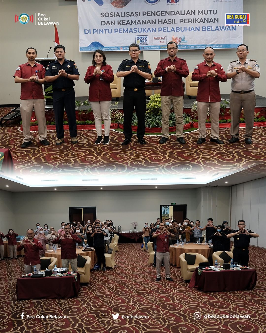 Selasa (25/10). Sosialisasi Pengawasan Mutu dan Keamanan Hasil Perikanan di Pintu Pemasukan Pelabuhan Belawan diselenggarakan oleh Badan Karantina Ikan, Pengendalian Mutu, dan Keamanan Hasil Perikanan (BKIPM) Medan II dilaksanakan di Hotel Prime Plaza Kualanamu Medan dengan dihadiri oleh seluruh pemangku kepentingan pengawasan mutu hasil perikanan.