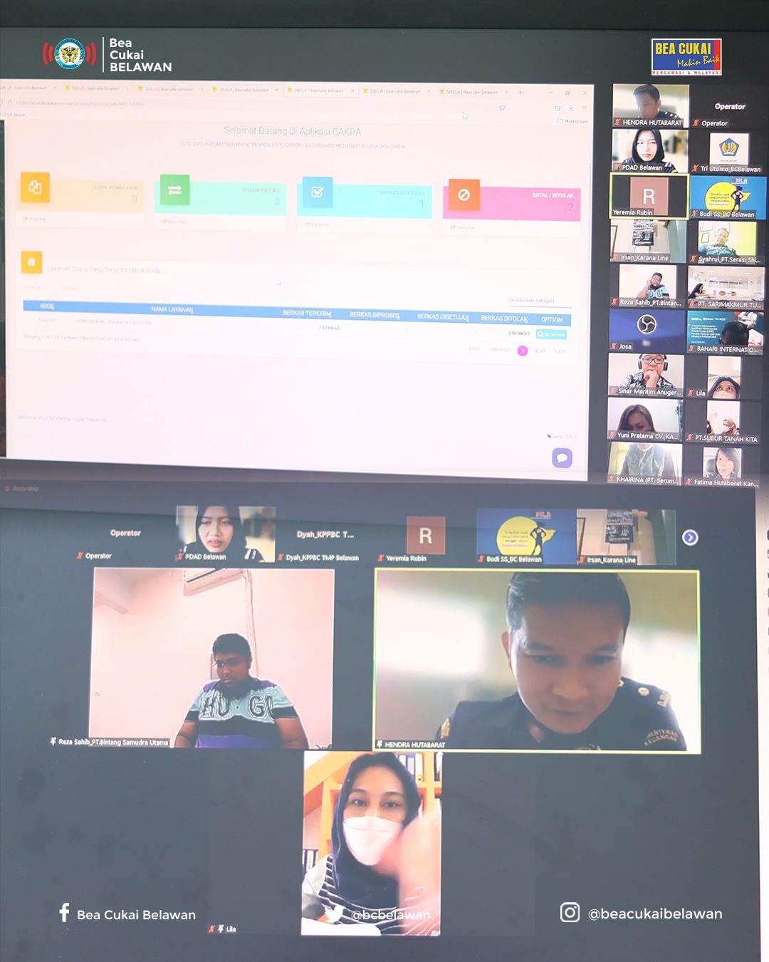 Belawan, (17/03) Bea Cukai Belawan lakukan Sosialisasi Aplikasi SIBELA Gen3 secara daring melalui zoom online. Sosialisasi menyasar para penggunajasa di lingkungan KPPBC TMP Belawan juga diikuti oleh beberapa Pejabat/Pegawai di lingkungan Kanwil DJBC Sumut.